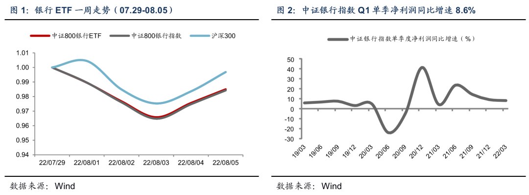 上周银行指数的收益率-1.6%,跑输沪深300的-0.3%;银行整体行情波动大于沪深300。中证800银行指数年初至今的收益率为-11.2%,跑赢沪深300的-15.9%。