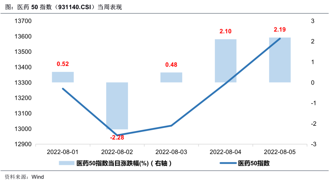 8月1日至8月5日,医药50指数(931140.CSI)全周累计涨跌幅3.01%,沪深300指数涨跌幅-0.28%。医药50指数跑赢沪深300指数3.29个百分点。
