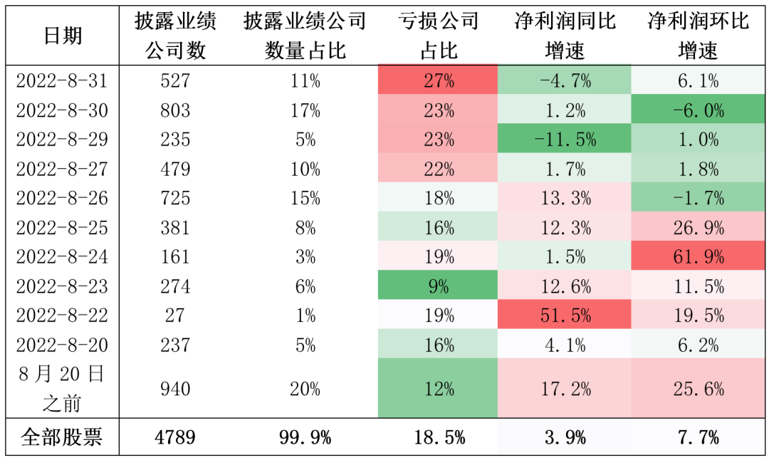 ➤ 越晚披露业绩的公司,业绩相对更差。比如下表中8月29日之后披露中报的公司,不仅净利润没怎么增长、而且亏损公司数量也不少。