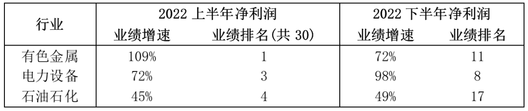 2、强者恒强行业:新能源(锂电池、光伏、新能车)、有色金属。这两个行业,上半年业绩增速排名靠前,下半年业绩增长预期,也排名前列。