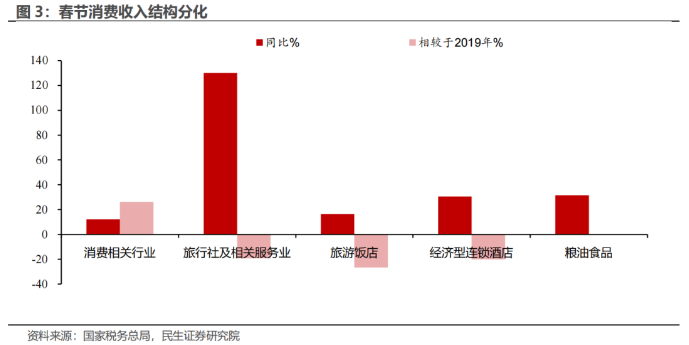据民生证券统计,今年春节期间人员出行指数已经超过2019年同期,但场景消费(包括出行链、餐饮、影院等服务消费)反弹高度仍未触及疫情前水平。