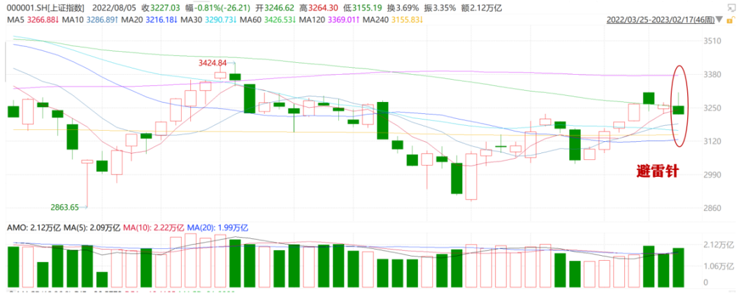 图:上证指数周K线形成“避雷针”走势