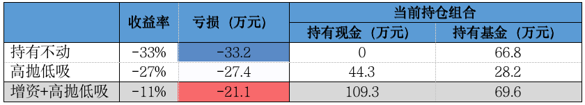 亏得的确少了,但是小A还不满意:都说“补仓”是“自救”的最好方法,如果在去年4月份的时候,小A愿意再拿出100万补仓,并且继续进行上述“高抛低吸”策略,那会不会亏得更少?