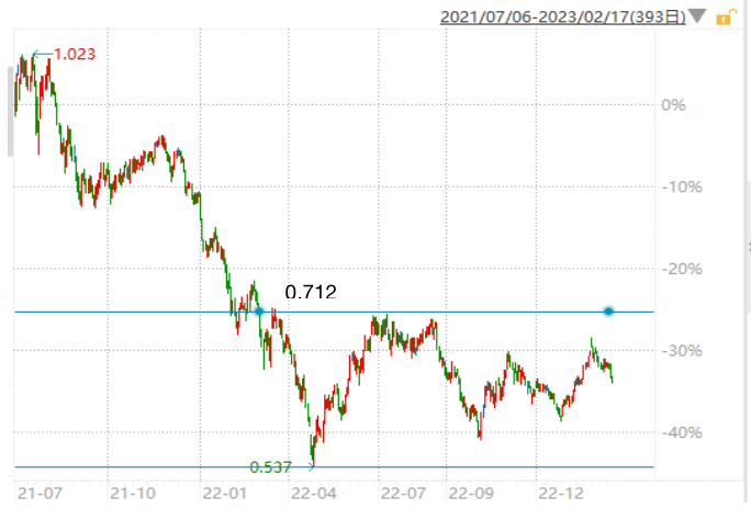 有一个客官小A,两年前拿100万买了只基金。截止23年1月底,他的100万还剩下66.8万,亏了33万。