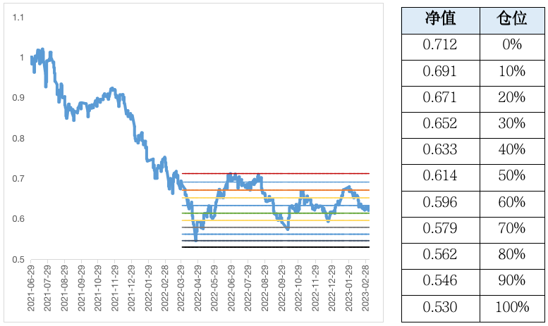 ◆ 基金每跌破一个网格,就加10%的仓位,直到基金净值跌到底部(0.537元),仓位会被慢慢加满;